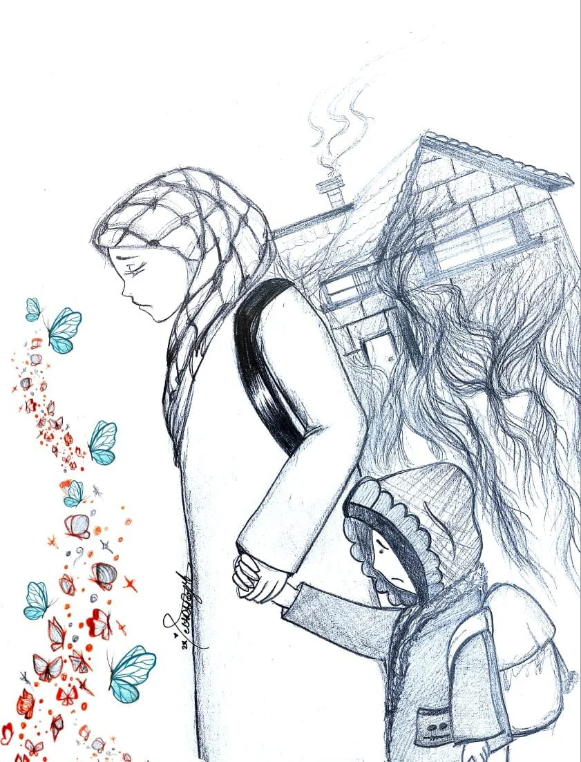 The second painting is by a young artist still in Gaza now, Nada Anwar Essa Rajab