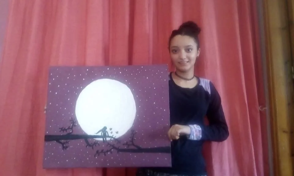 Layla in Gaza city in 2018 when she presented her painting to Nick Bilbrough.