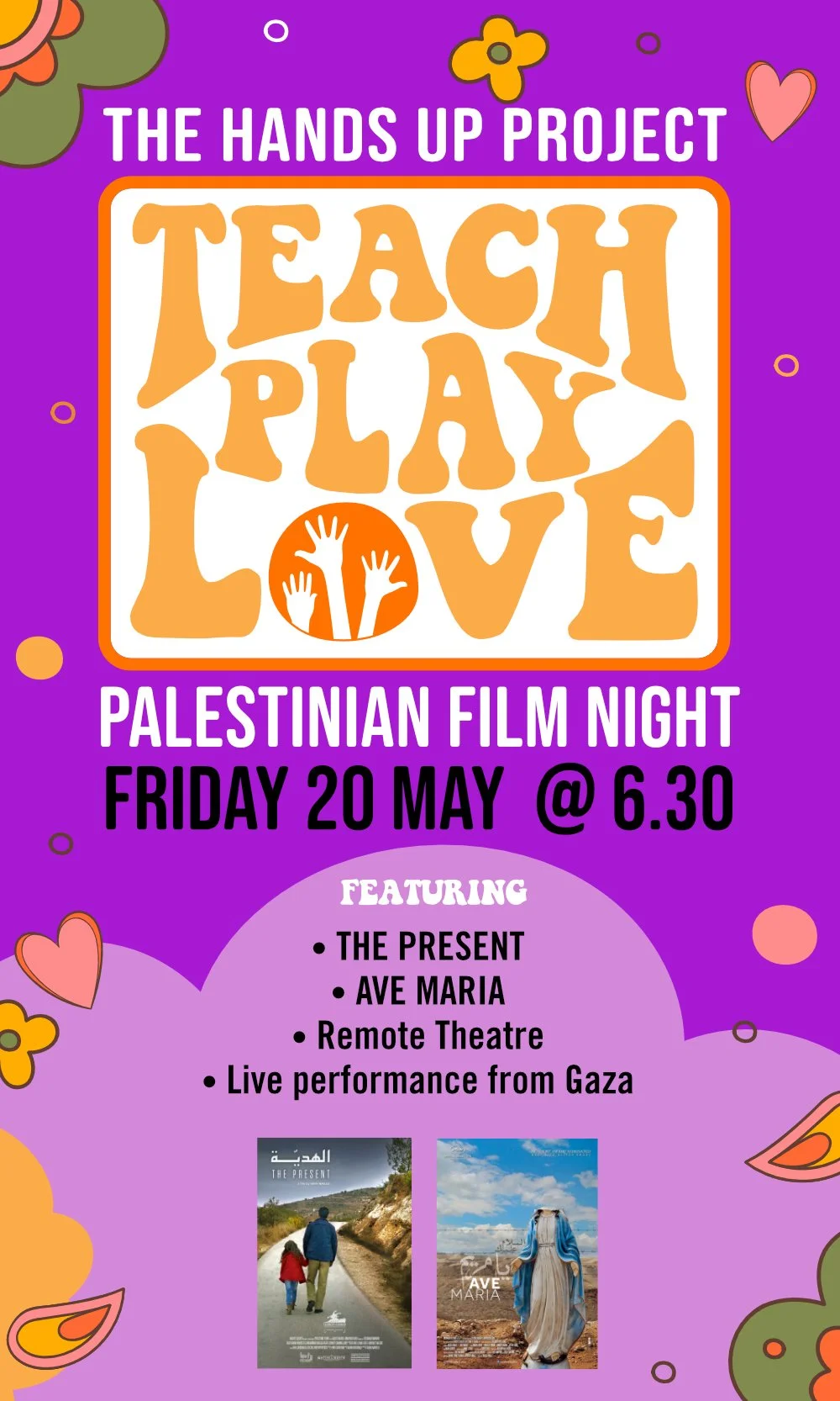 In celebration of creativity and resilience, we’re holding an evening of Palestinian films the night before our conference Teach, Play, Love. We’re showing 2 short films by Palestinian directors - Ave Maria and The Present. From the Hands Up Project, you’ll be able to see 2 of the prizewinning plays from the 2021 Lockdown Theatre competition and the first ever livestream of Welcome to Earth, performed by young people in Palestine and the Czech Republic.